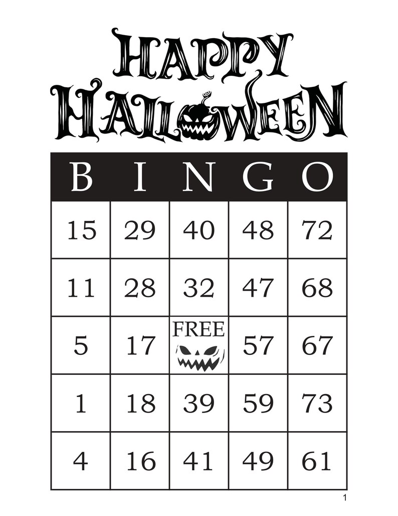 Black And White Halloween Bingo Cards.